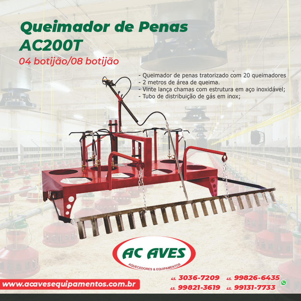 Queimador de penas 20 lança chamas com estrutura em aço inoxidável;- Tubo de distribuição de gás em inox;-...