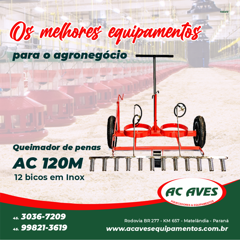 Queimador de penas 20 lança chamas com estrutura em aço inoxidável;- Tubo de distribuição de gás em inox;-...